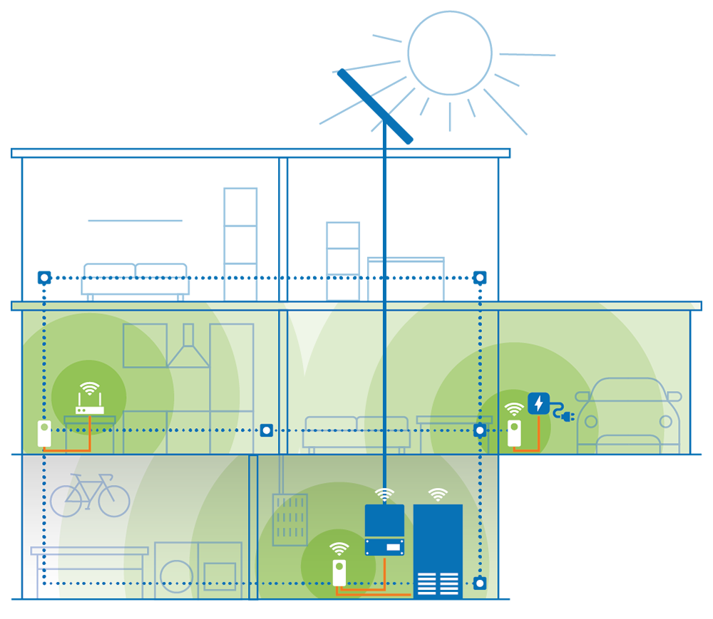 One significant advantage: If a photovoltaic system is also connected to the energy management system, a wallbox can draw power from the home's solar panels. Powerline networking thus enables an effective and sustainable energy balance.